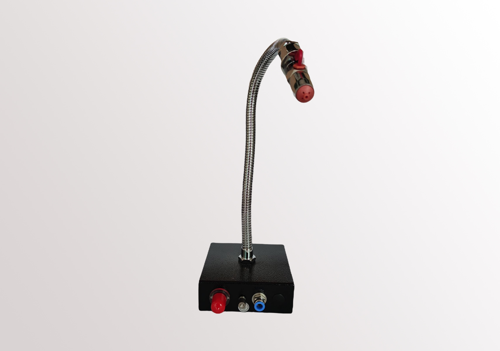 ST-203A 離子風(fēng)蛇可產(chǎn)生大量的帶有正負(fù)電荷的氣團(tuán),被壓縮氣高速吹出,可以將物體上所帶的電荷中和掉。當(dāng)物體表面所帶電荷為負(fù)電荷時,它會吸引氣流中的正電荷,當(dāng)物體表面所帶電荷為正電荷時,它會吸引氣流中的負(fù)電荷,從而使物體表面上的靜電被中和,達(dá)到消除靜電的目的,高速的壓縮氣還可將物體上的頑固積塵吹走。
